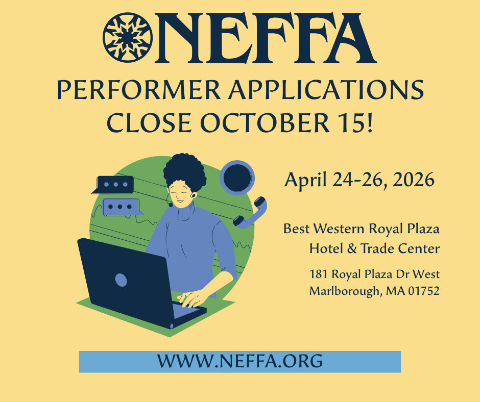PLEASE DO NOT WAIT UNTIL THE DEADLINE TO APPLY!!! It is so much easier if the applications come in continuously over the application period, rather than all at once at the end. We are strict about these deadlines — NEFFA is a gigantic operation, and without structure everything would fall apart. THANK YOU in advance for helping us out by applying early.