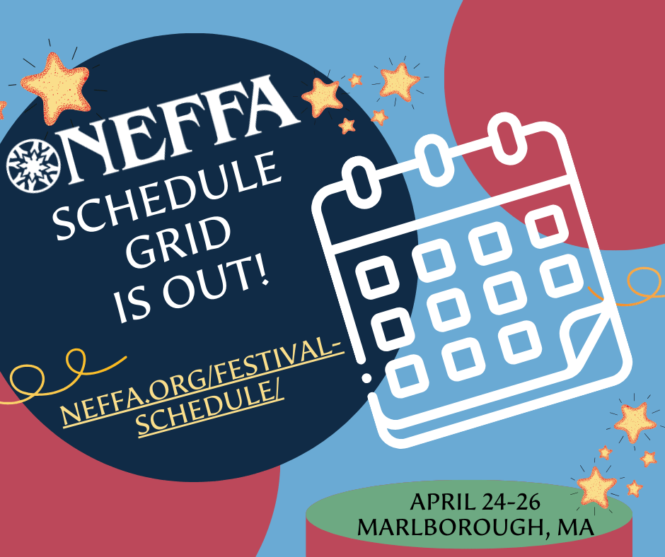 NEFFA 2026 would like to announce our largest ever program! We have close to 300 events in five dance halls and six folk music and song venues. Dance the day and night away with contras and squares, couple and social dance, and international dances from all over the world. Raise your voices in song with dozens of song circles, and get your jam on with plenty of jamming areas in the hotel and almost 40 jams on the schedule.